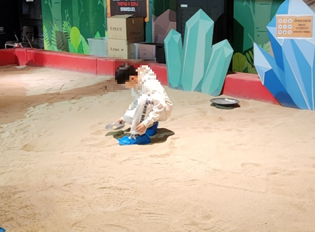 그다음은 포클레인 체험과 공룡화석발굴하기 체험, 모래 속에서 원석 찾기 체험까지 했어요.