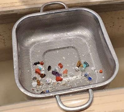 모래 속에 숨어있는 원석들을 물로 헹궈내어 원석들을 채취하는 것이에요.