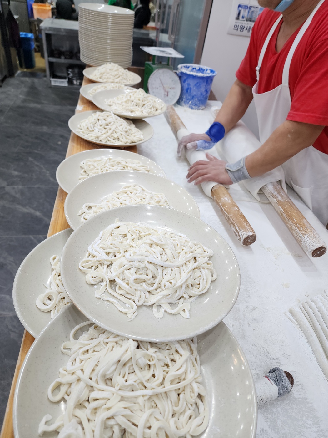 입구에 들어서면 카운터 옆에서 실시간으로 칼국수를 만들어내고 계신답니다.