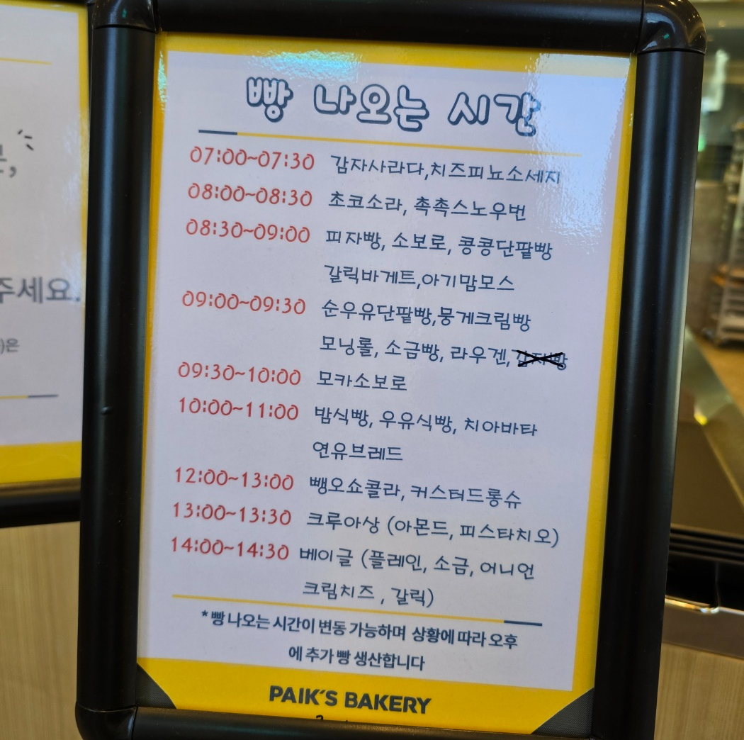 정말 좋아하는 빵종류가 있다면 아래의 빵 나오는 시간표를 참고해서 구매하세요.