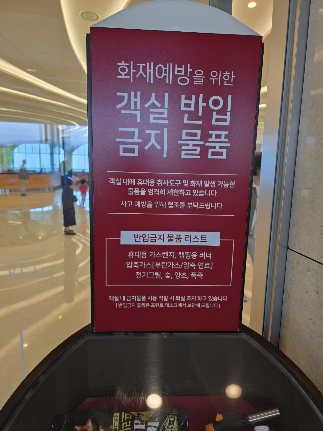 입장 전 객실에 반입 금지물품을 참고하세요.
