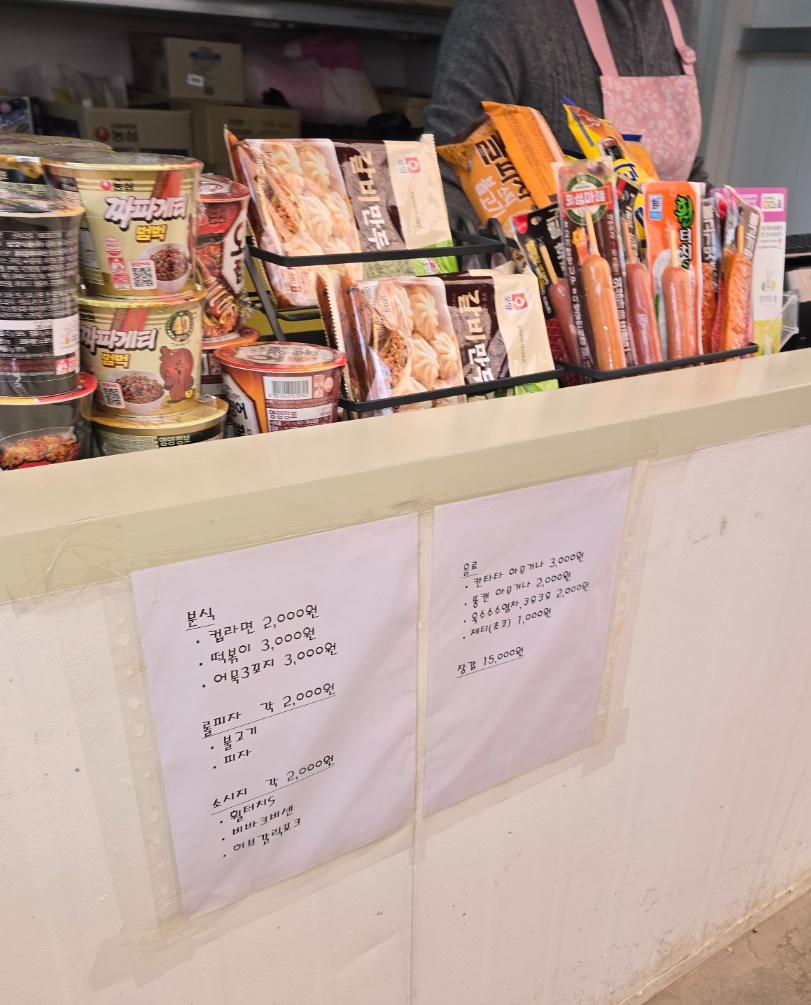 이 정도면 거품도 없고 저렴하고 맛있어서 더 만족스러웠던 눈꽃썰매장의 매점이에요.