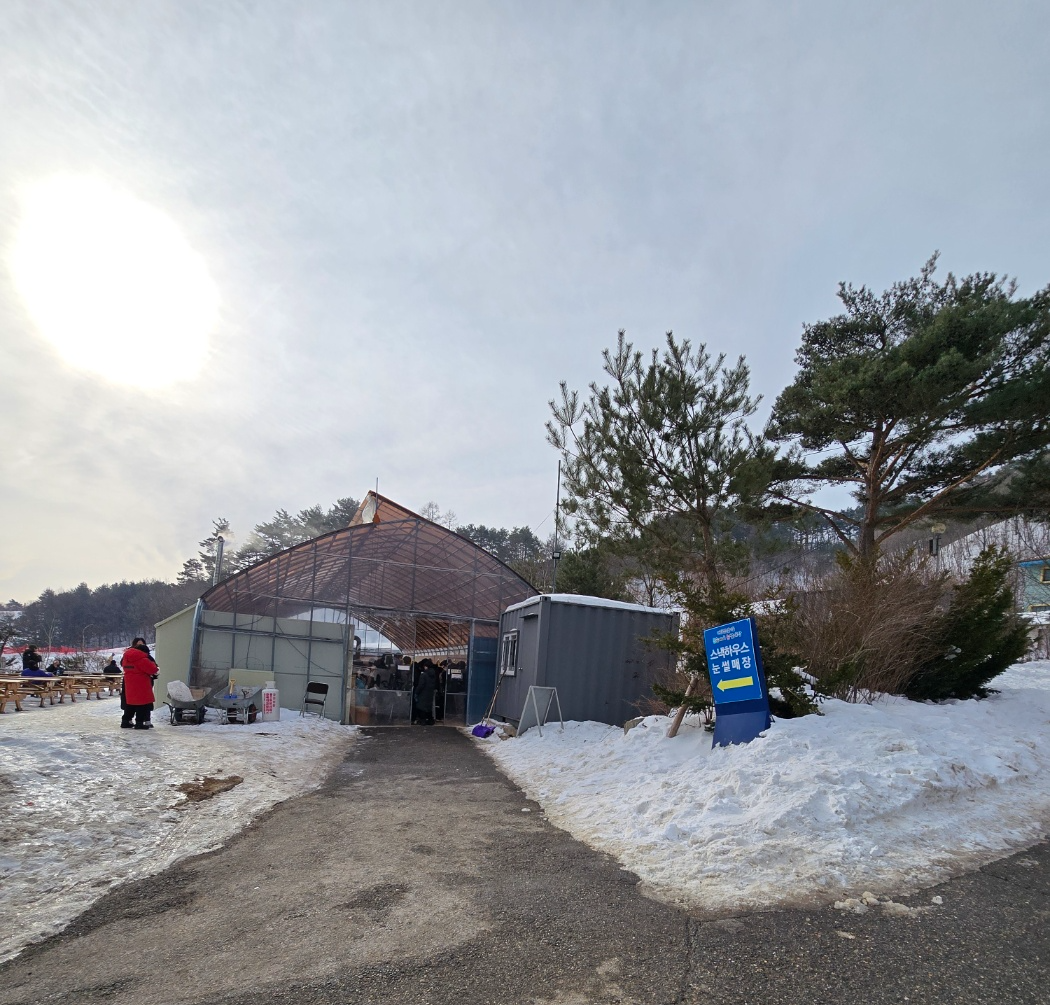 입장 전 매점과 난로가 있는 하우스에 대기하고 있다가 안전요원의 설명을 듣고 나서 썰매장으로 입장이 가능해요.