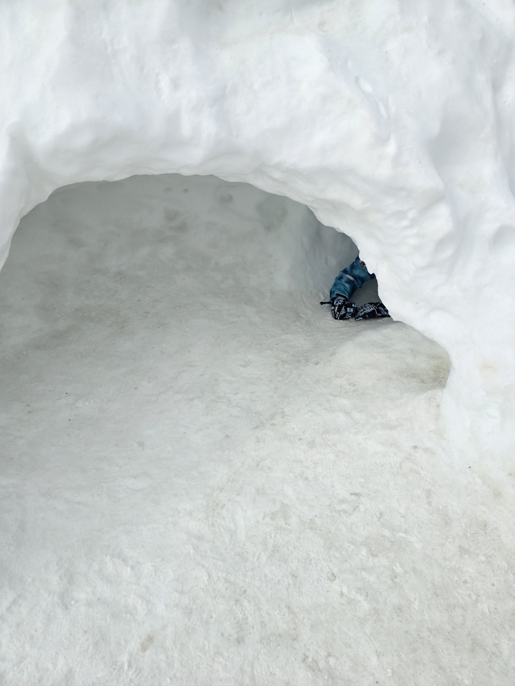 썰매만 타기 힘들 땐 눈으로 쌓인 동굴처럼 돼있는 동산에서 놀기두 하고요.