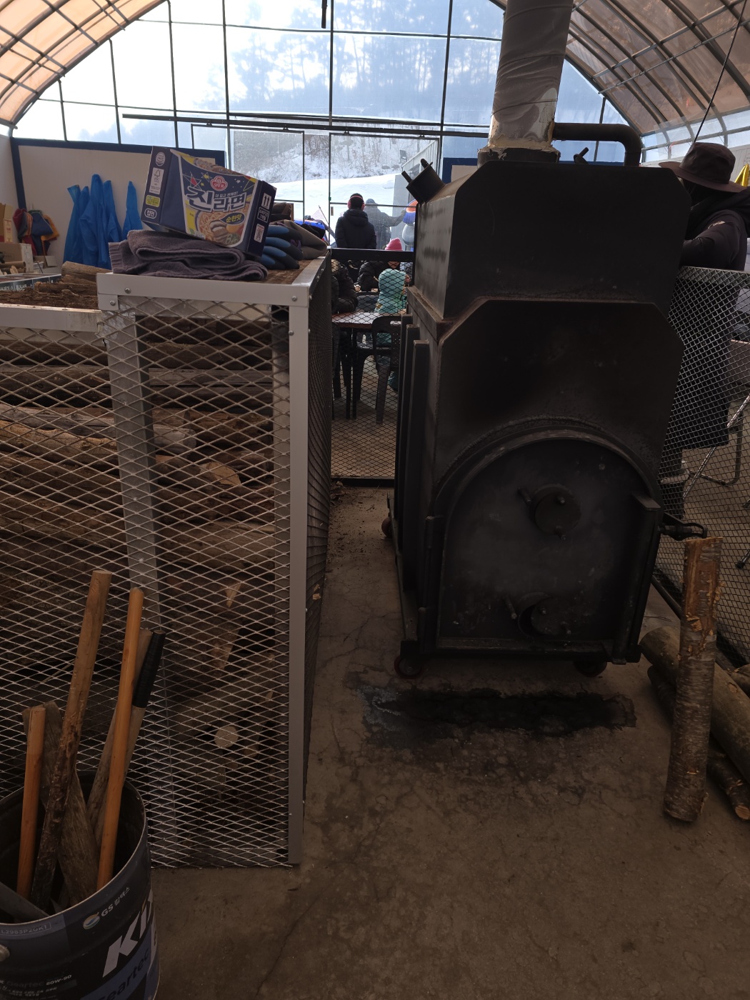 매점 안에는 썰매장으로 입장하는 통로도 있지만 몸을 따뜻하게 녹여줄 수 있는 난로도 마련되어 있답니다.