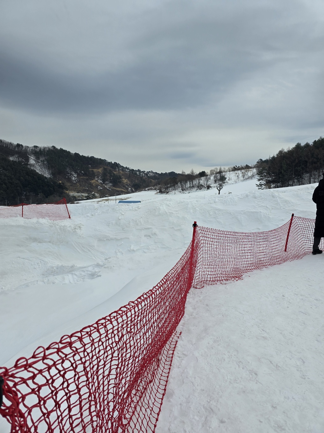 하얀 눈 속에서 깊게 굴곡진 코스들이 사진에는 제대로 담기지 않아서 아쉽네요.