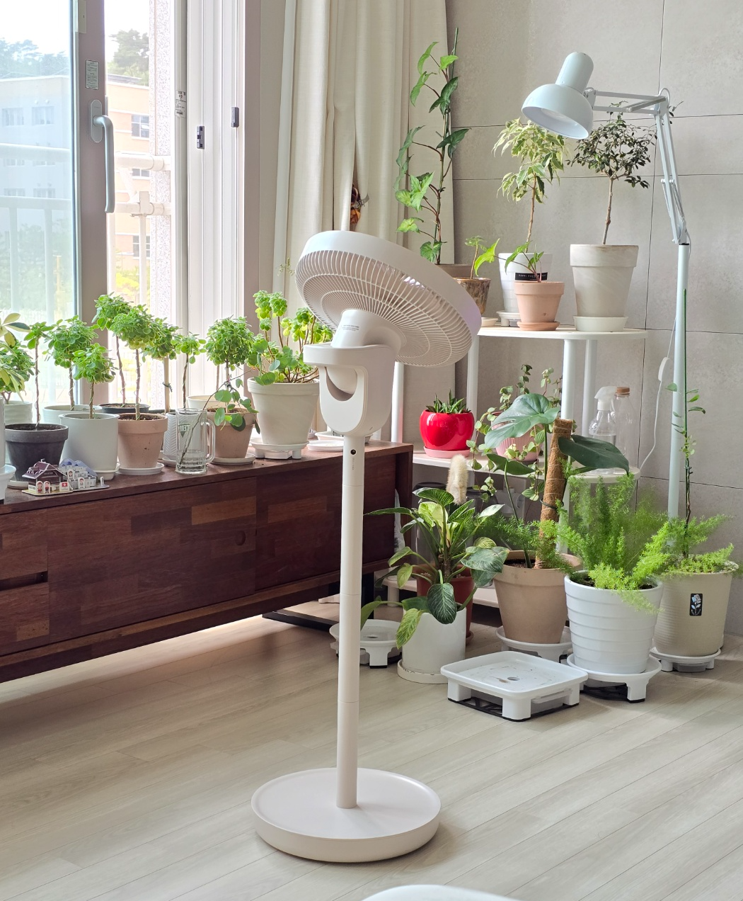 식물이 많은 우리 집은 여름에 특히 식물들이 힘들어하는데 여름낮시간에 상하 좌우 각도 조절해서 틀어 놓으면 공기 순환에도 도움이 되어서 필수예요.