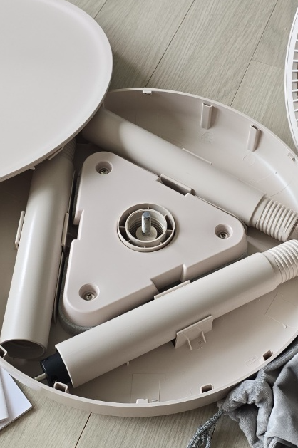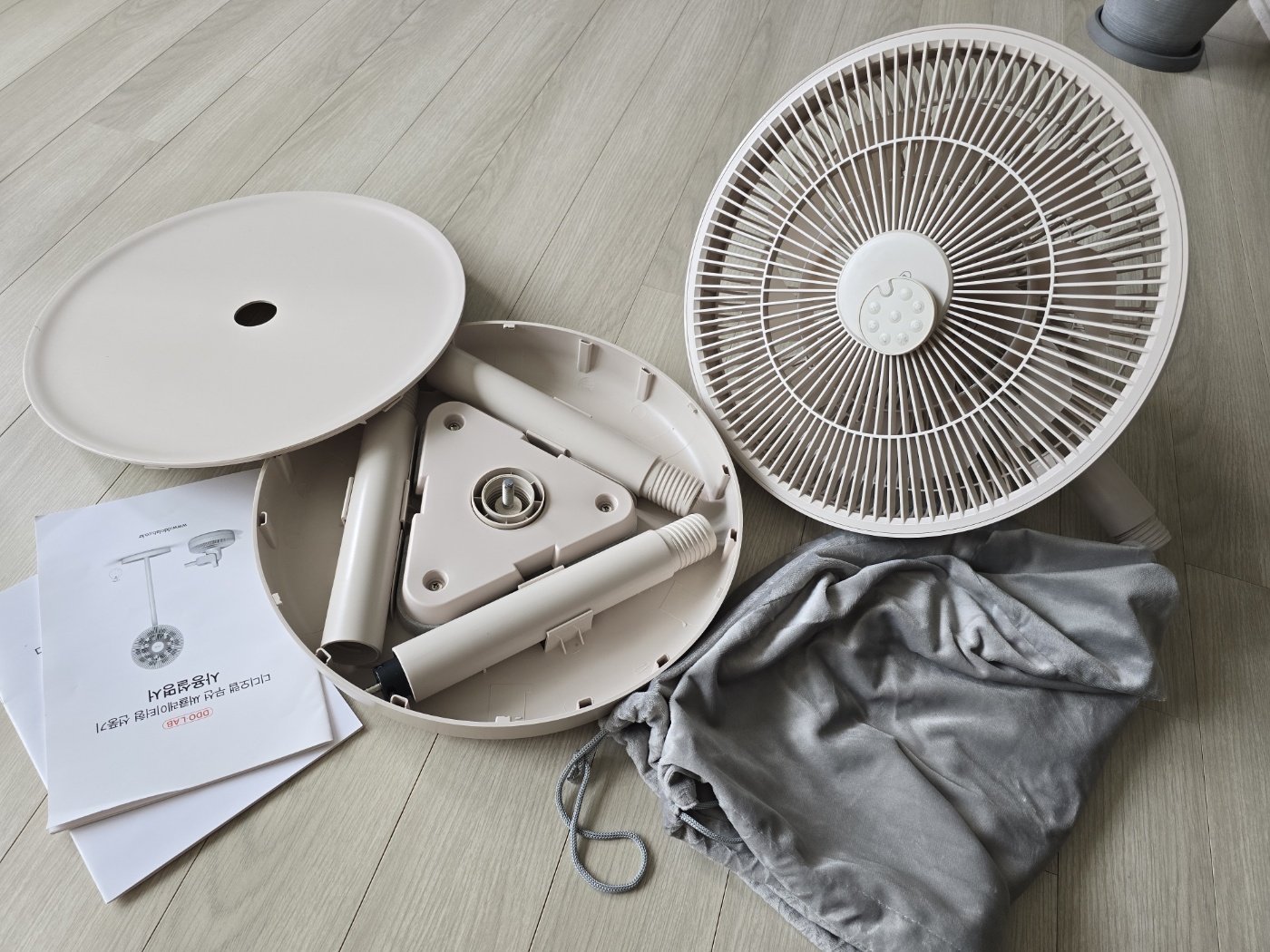 기둥 3개를 분리해서 바닥판에 수납한 뒤 선풍기와 바닥판을 합체하여 보자기에 넣으면 부피가 축소되는 것이 너무 마음에 들었어요.