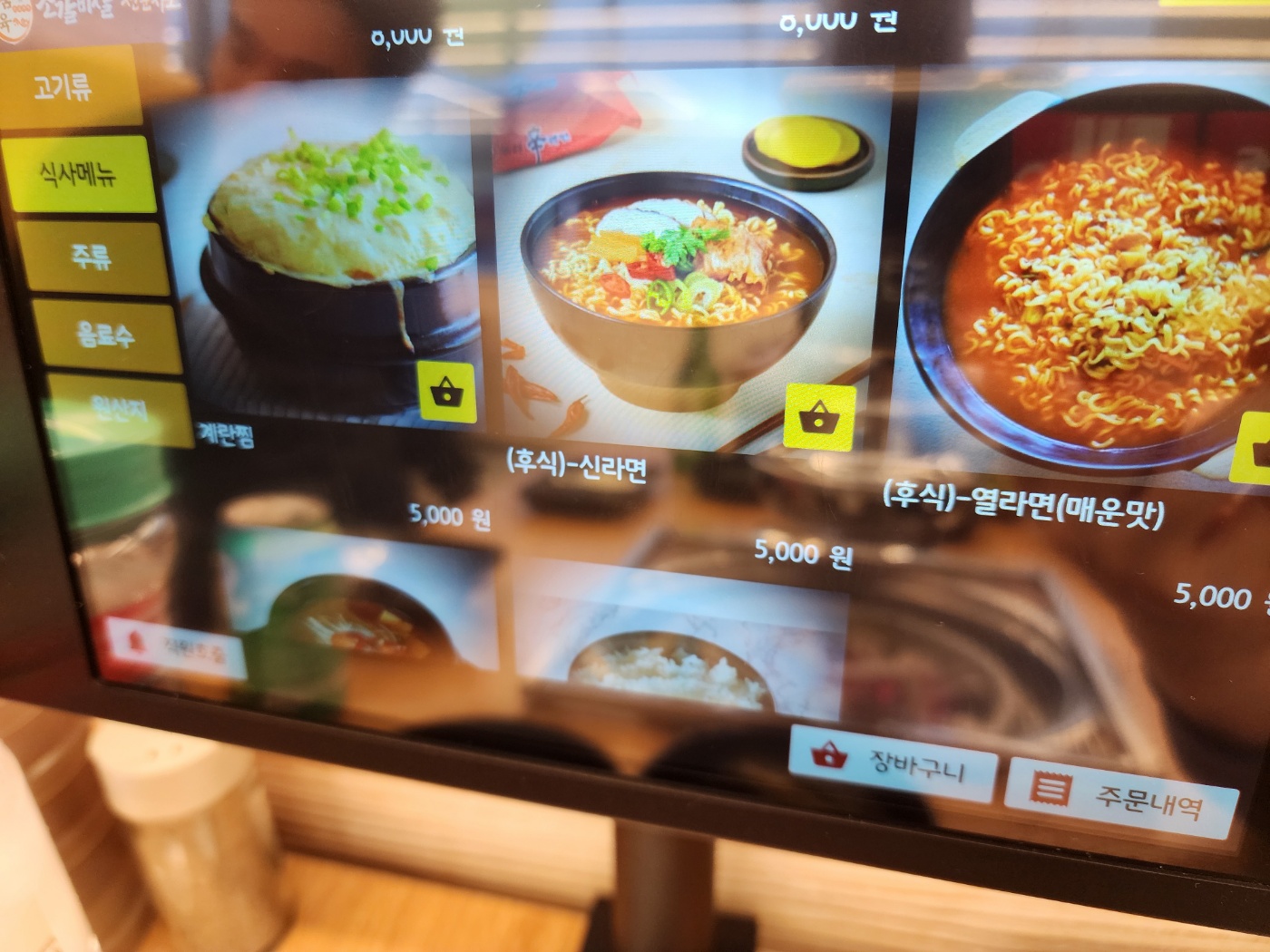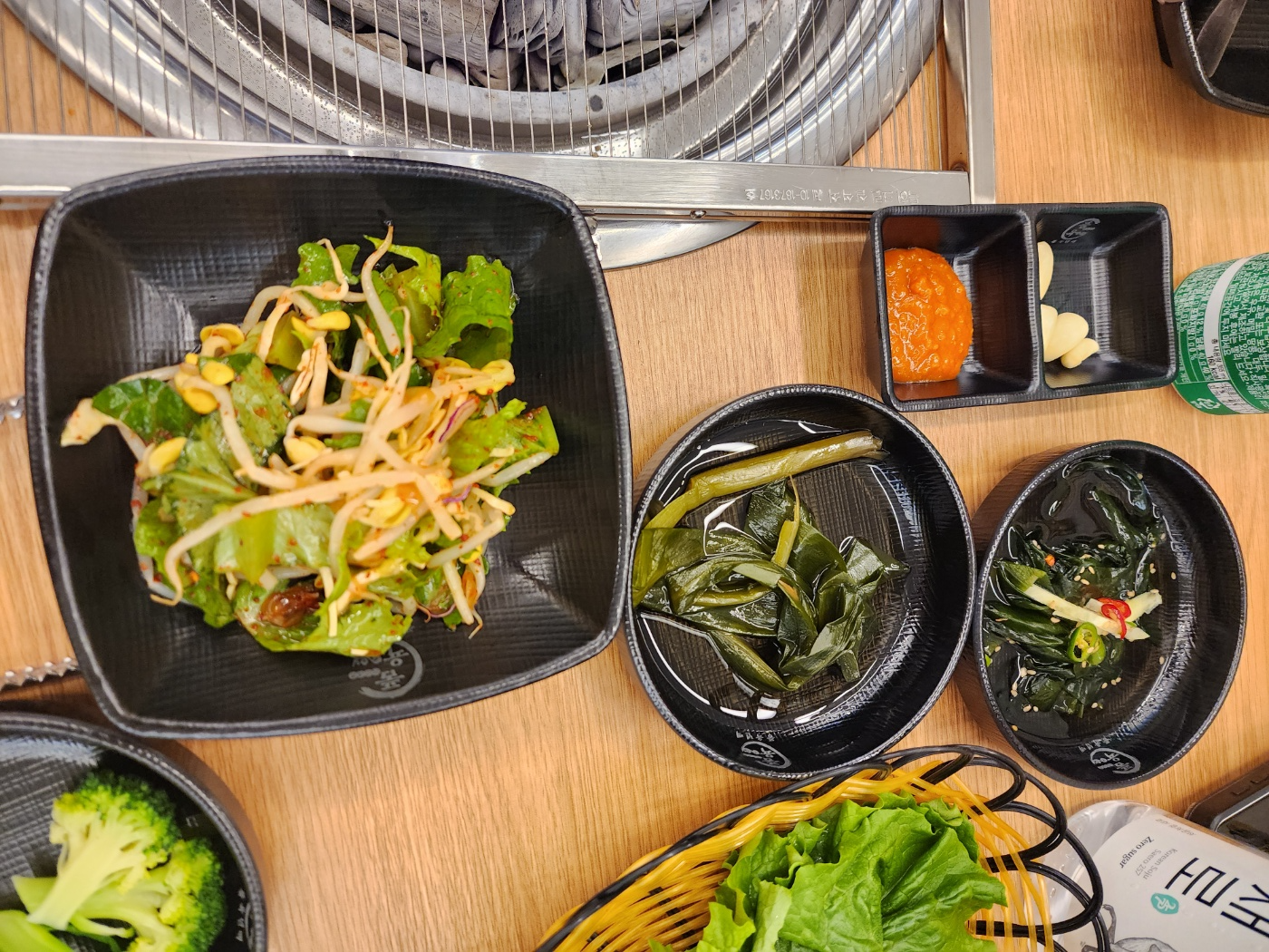 처음에는 기본반찬이 나오고 그다음부터는 셀프바를 이용해요.