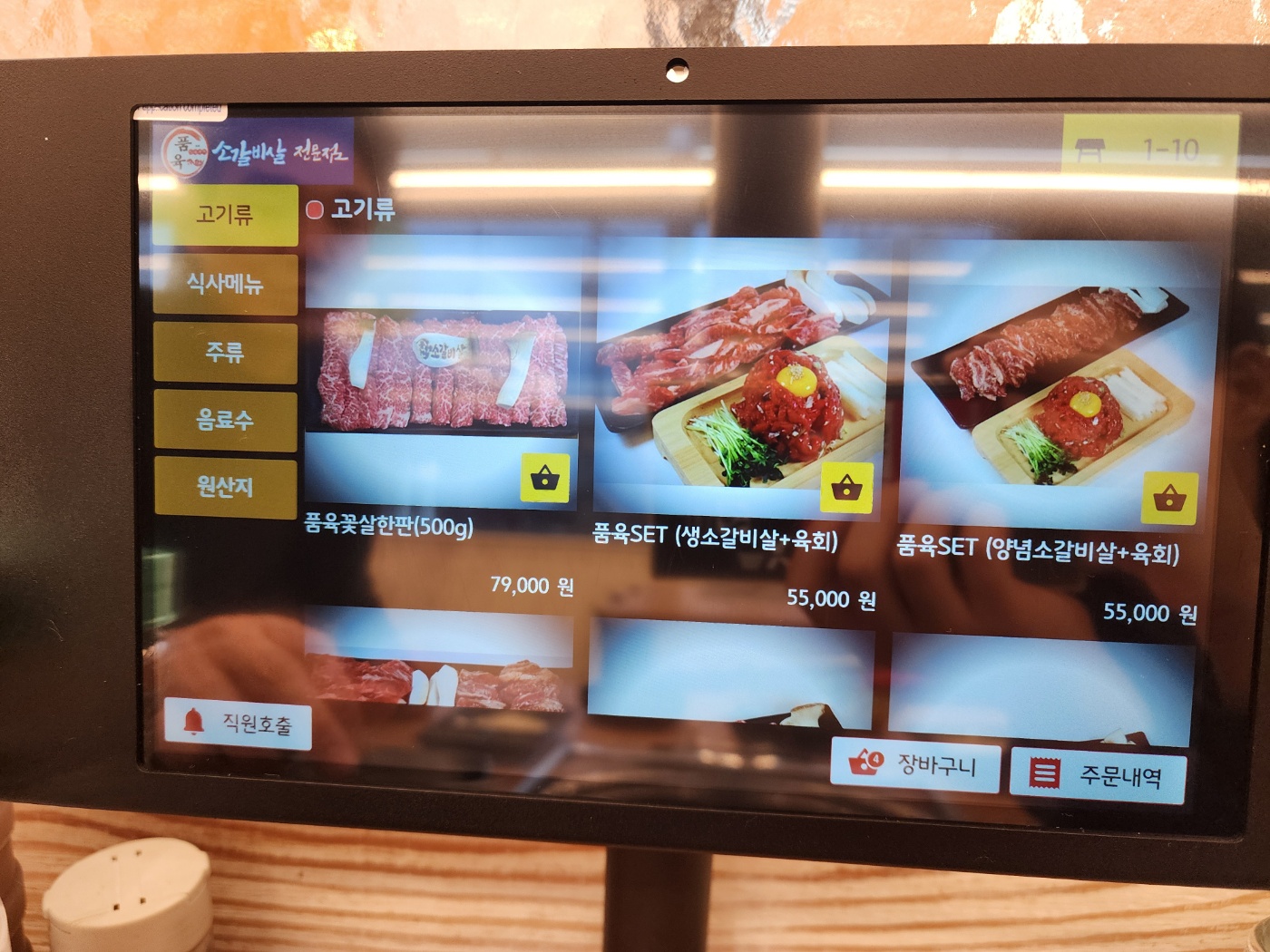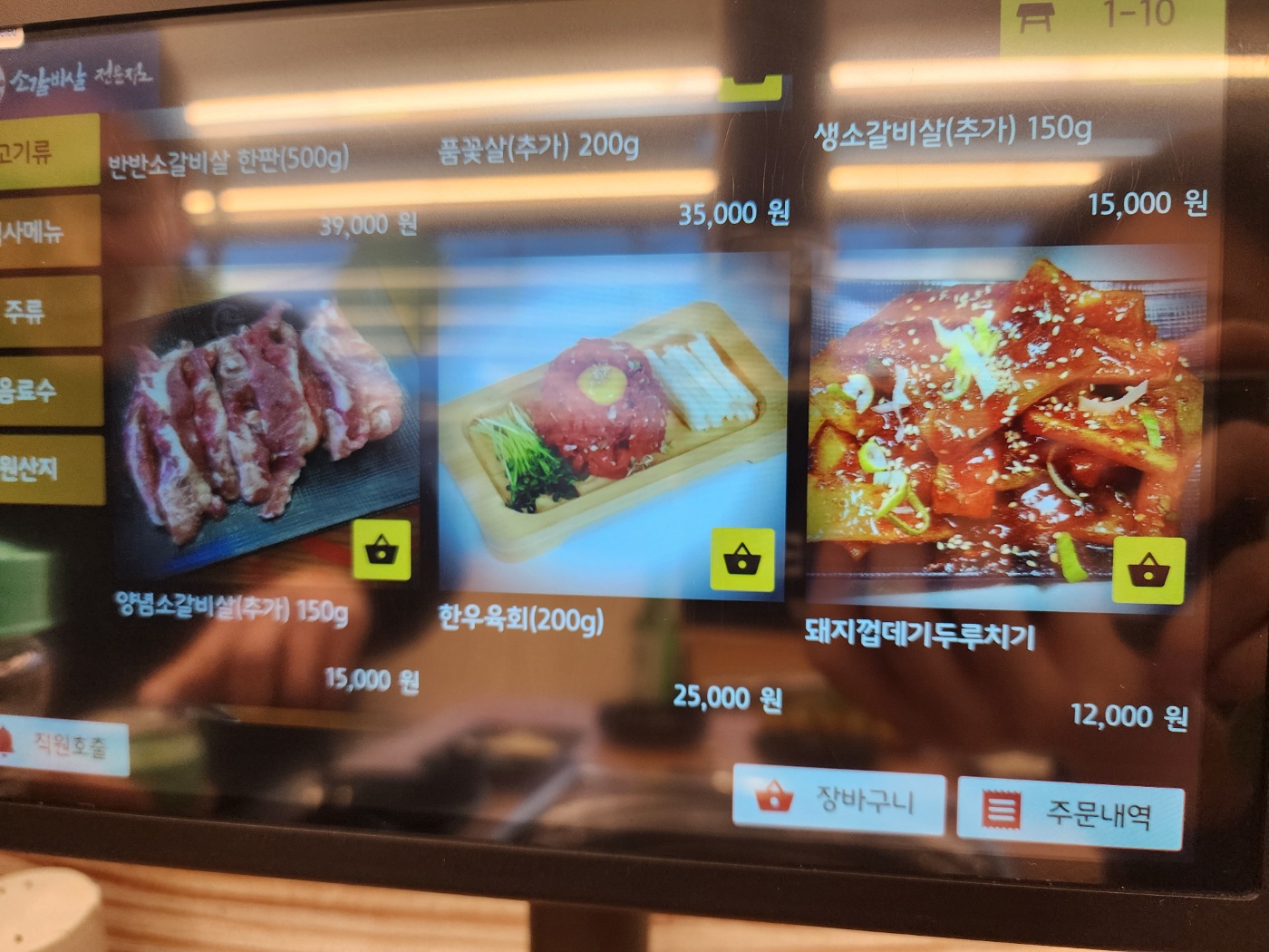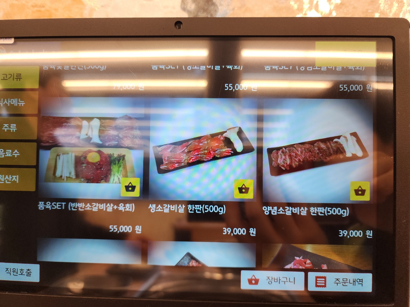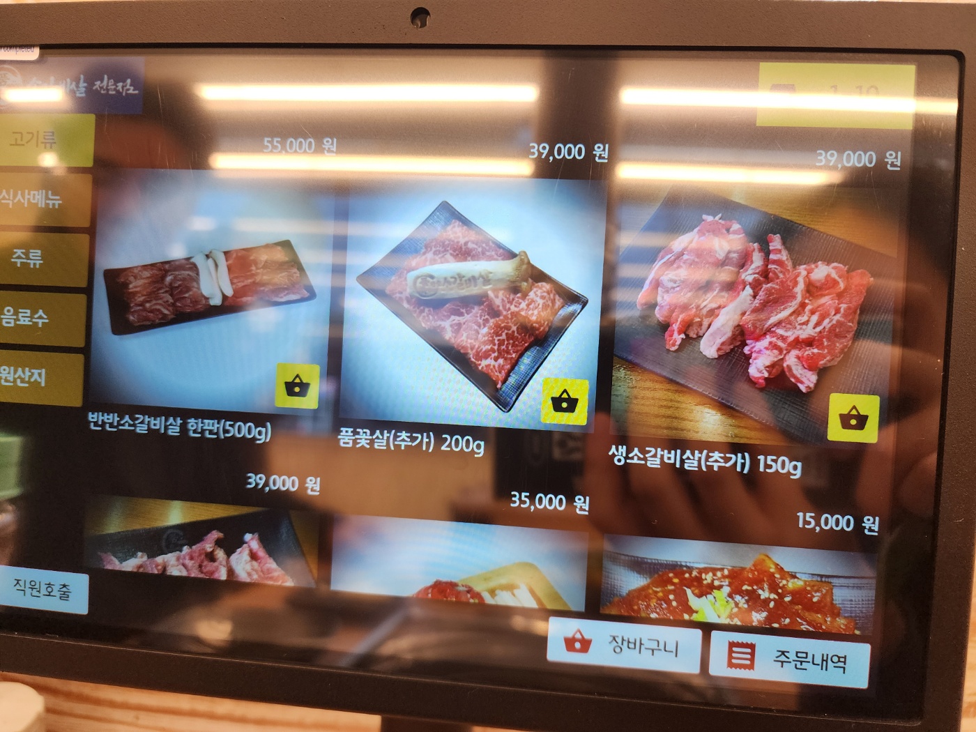 우리는 품육세트 양념소갈빗살+육회를 우선 주문했어요.