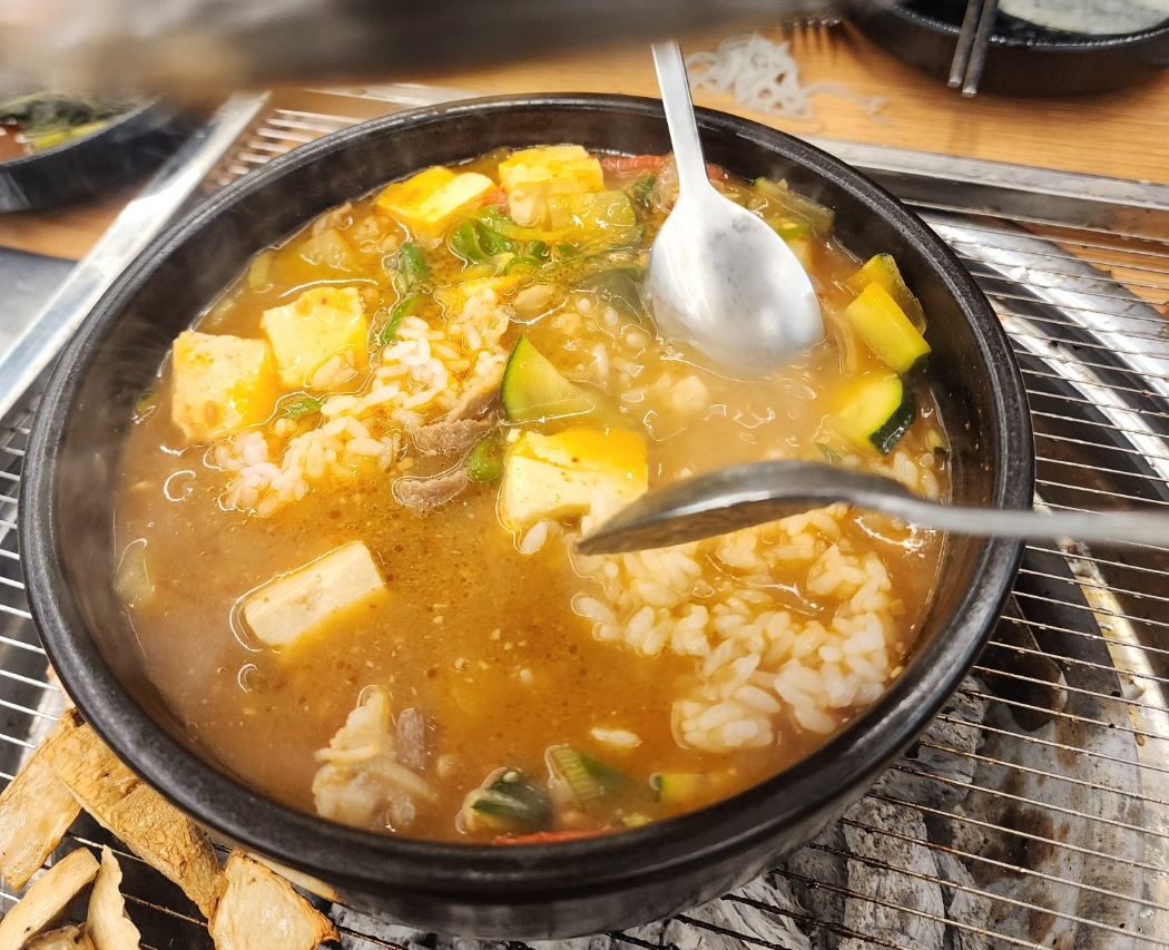 공깃밥을 모두 넣고 따끈하게 불판 위에 올려서 먹으면 너무 맛있거든요.