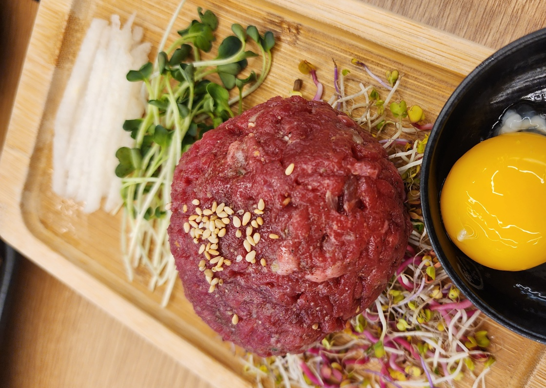 육회도 양념이 적당히 배어있어서 한입 먹자마자 딱 맛있다고 느꼈어요. 적당히 달달짭짤고소한 맛이에요.