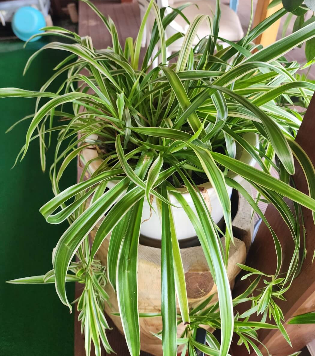 접란은 거미식물이란 이름처럼 가느다란 잎이 풍성하게 퍼지며 자라는 식물입니다.